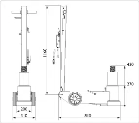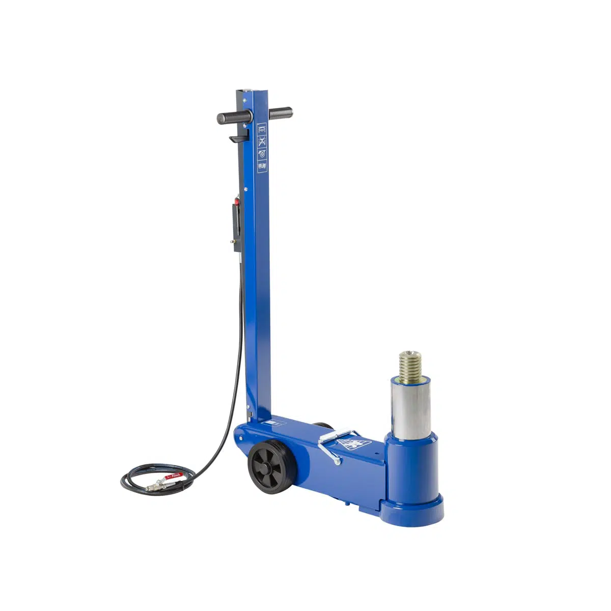Tjakkurinn virkar bæði á þrýstilofti eða þá á köfnunarefni úr dekkjum vélarinnar eða á sér kút.