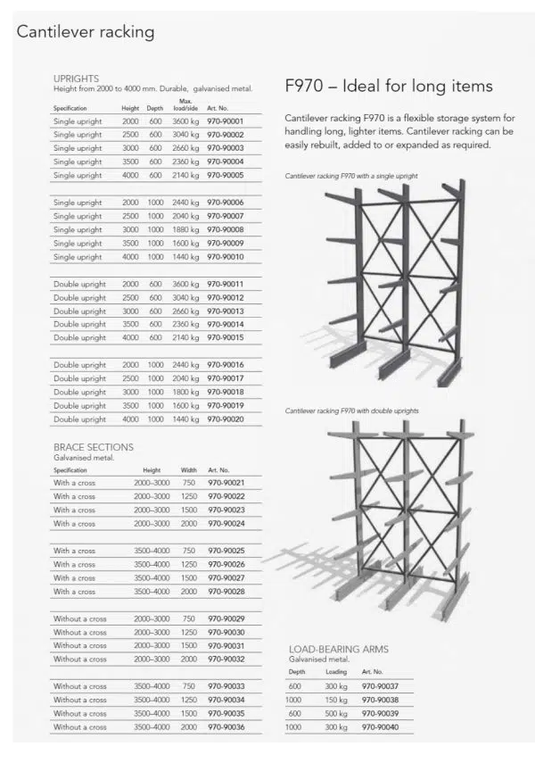 Armarekkar eru sérstök gerð rekka sem leyfa geymslu og gott aðgengi að löngum og þungum hlutum.