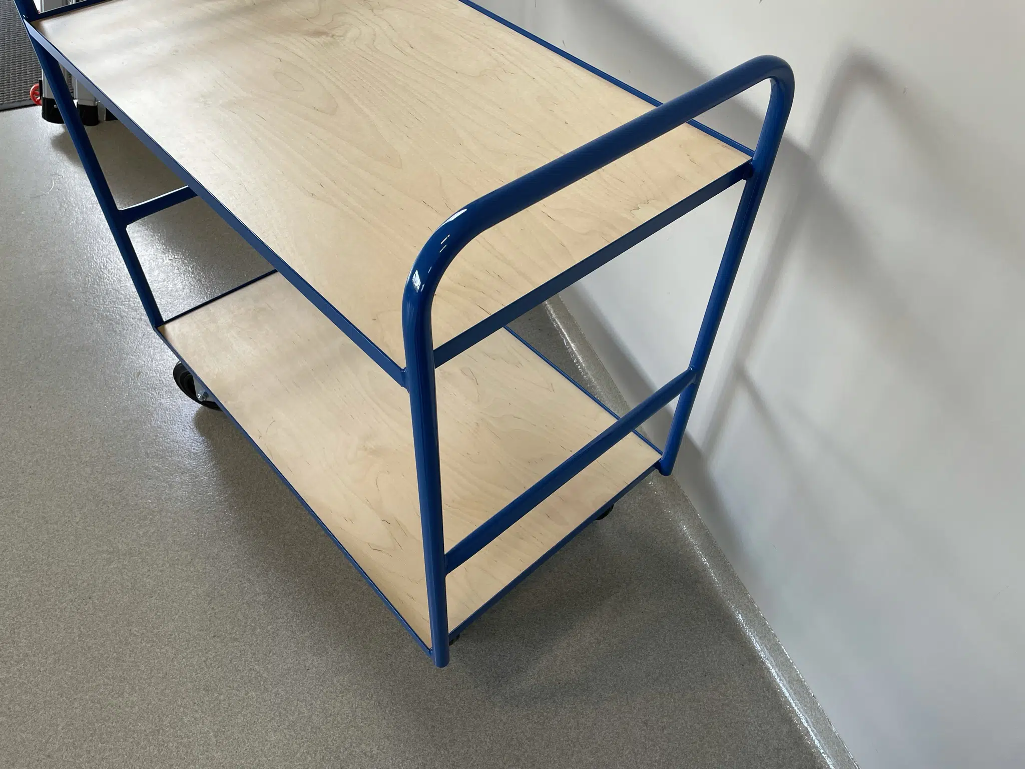 Handsmíðaður af okkur í smiðjunni okkar í Vatnsdal, öll samskeyti samsoðin, hágæða krossviðsplötur og pólýhúðað stál í fallega bláum lit.