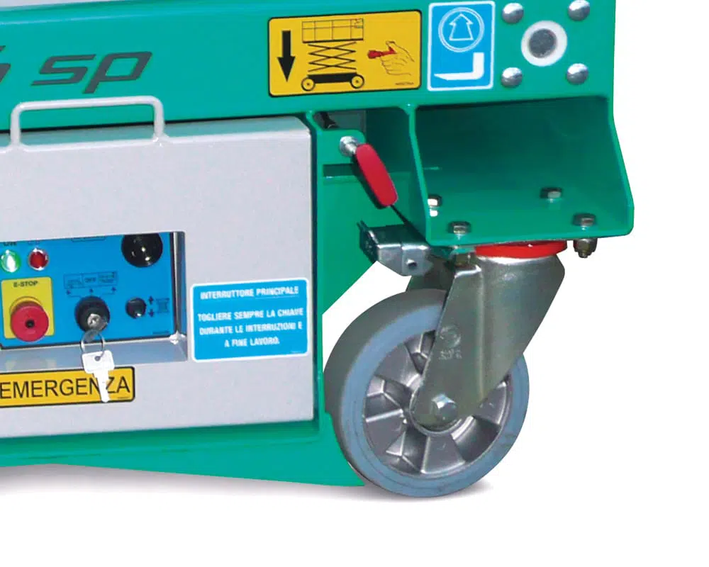Stýrir sér með því að framhjól eru “laus” og afturhjól vinna á móti hvor öðru, þetta gerir það að verkum að lyftan er einstaklega lipur í snúningum