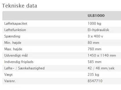 • Lyftitími frá lægstu í hæstu stöðu er 16sek