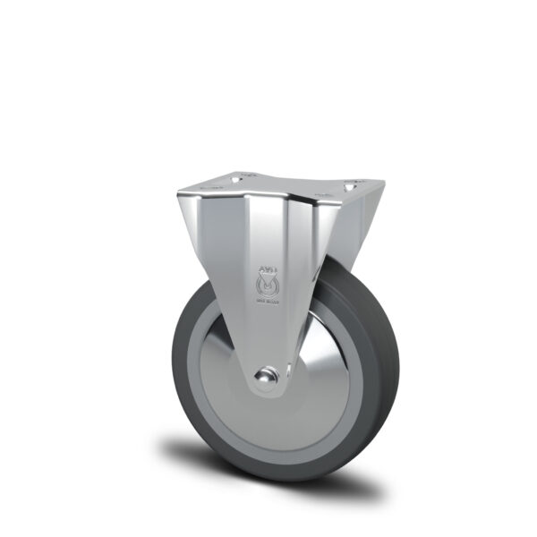 Ryðfrí hjól frá AVO, kjammarnir eru úr 304 ryðfríu stáli og baninn á hjólinu er polyurethan sem gefur örlitla mýkt en lítið viðnám, legur í snúning eru ryðfríar kúlulegur.
