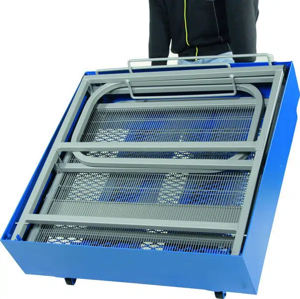 Samanbrjótanleg mannkarfa fyrir lyftara frá Intra, frábær kostur þar sem geymslupláss er lítið eða ef ferðast þarf með körfuna.