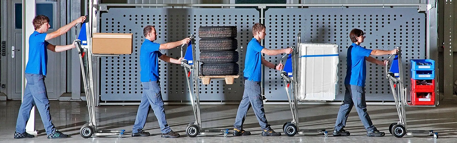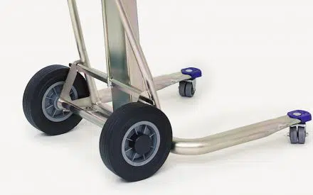 - 200mm gúmmíhjól að aftan, tvöföld 50mm snúningshjól að framan.