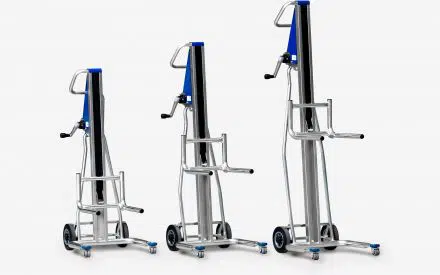 Léttar lyftitrillur fyrir ýmsan varning, sveif er snúið til þess að hækka gaffla upp.